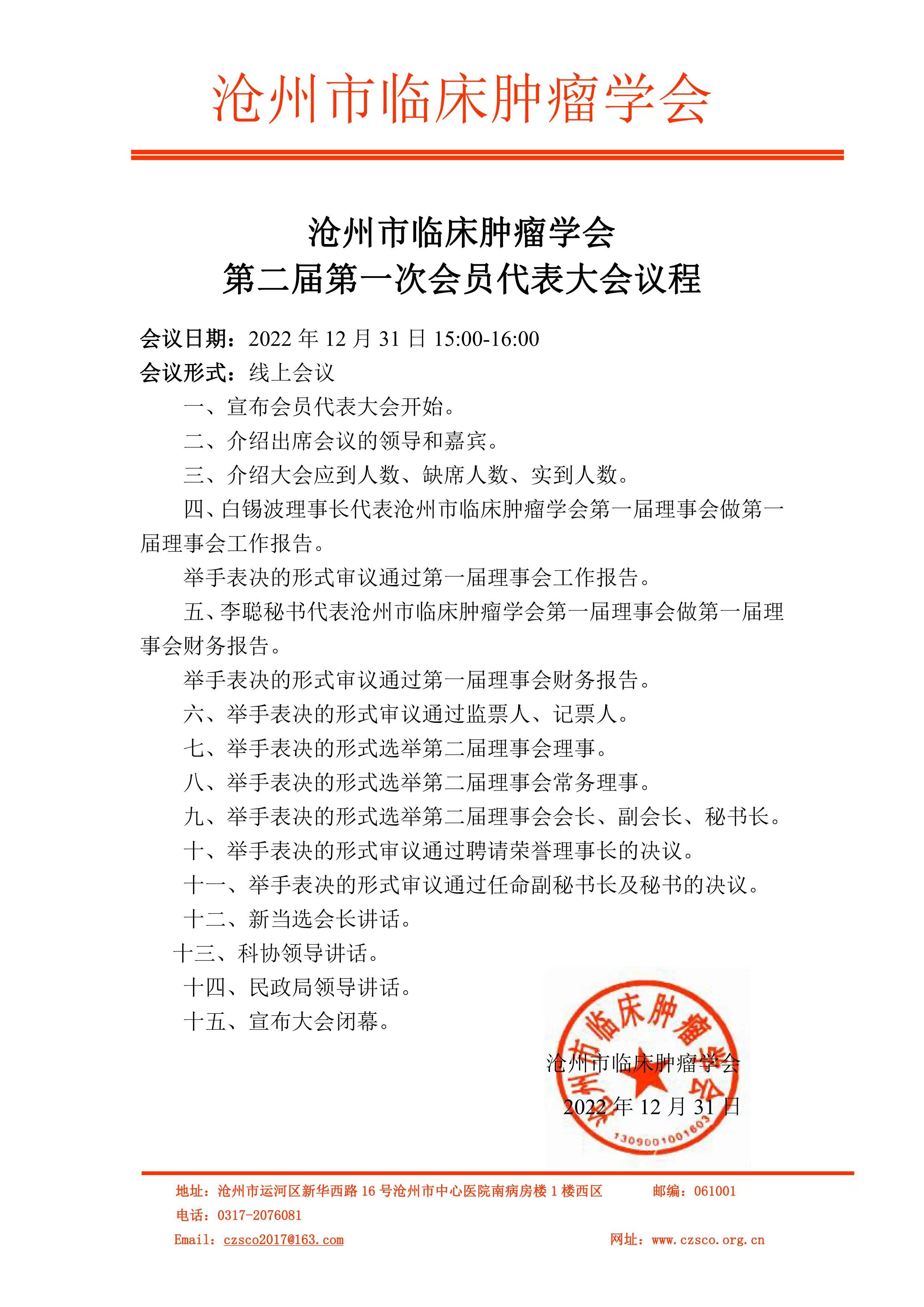 热烈庆祝沧州市临床肿瘤学会第二届第一次会员代表大会暨沧州市临床肿瘤学会换届大会顺利召开
