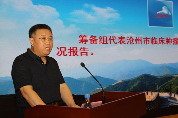 本次会议当选的副理事长兼秘书长,沧州市中心医院肿瘤外三科王遵义主任代表沧州市临床肿瘤学会筹备组向大会作筹备工作情况的汇报。