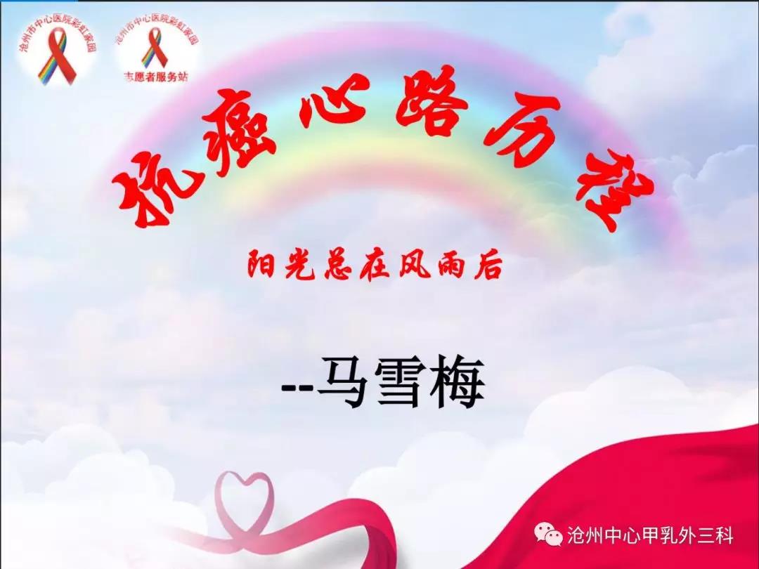 半年来,在医院领导的关怀下,在王遵义主任的倡导和肿瘤外三科全体医护人员的努力下,各位热心病友积极参与,参与,一路风雨兼程,不断发展壮大。在这个大家庭里,有一个又一个患者康复的笑脸,医院也由此树立了良好的社会形象,得到了公众和社会的肯定;促进了医患和谐,增强了新老患者之间的交流与沟通,通过彩虹家园这个平台相互鼓励和帮助,建立了战胜疾病的信念。
