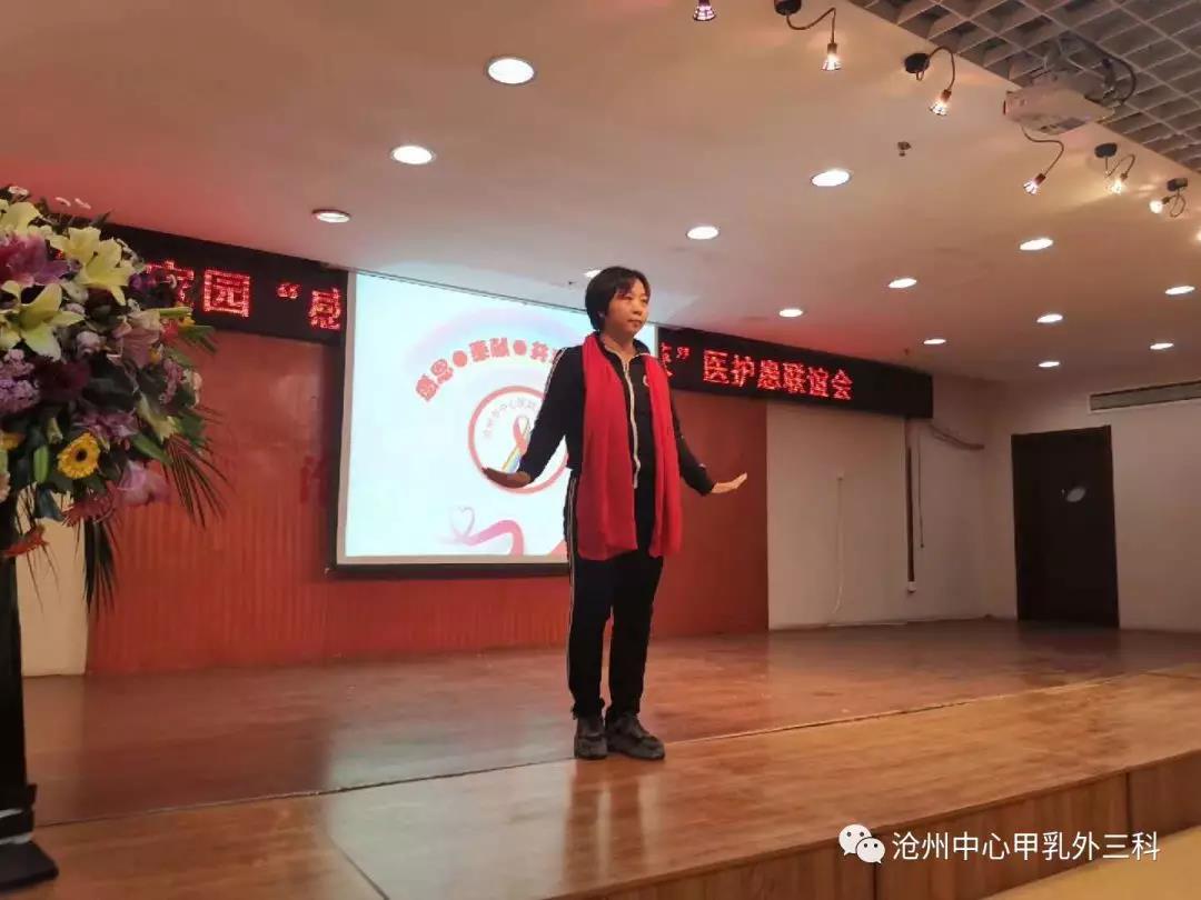 今天,通过这样一场医护患联谊活动,充分体现了我院医务工作者以人为本的工作理念,她是我们的志愿者,也是我们甲乳三科的一名患者,让我们来听听发生在她身上的故事。