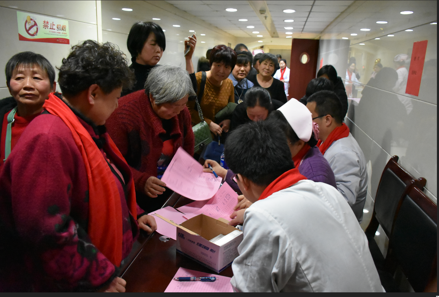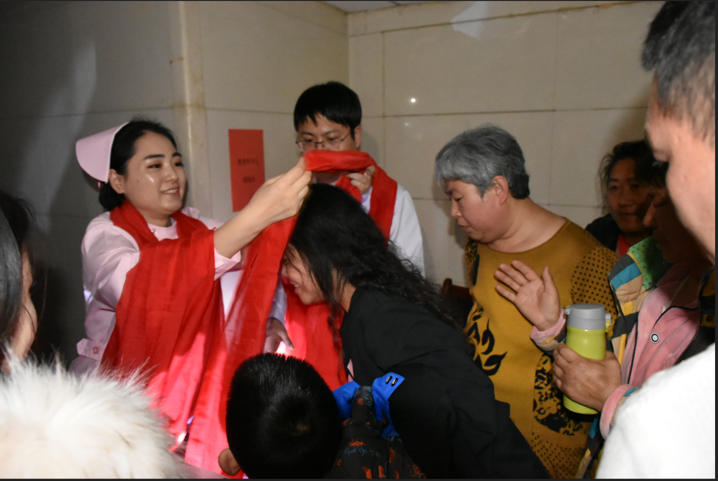 在这里向靳丽君副护士长致敬,为了更好的完成院领导和科室领导的指导意见和建议,尽可能多的帮助更多的亲人,付出了大量的时间,精力,沟通、协调组织会议。会议前天间断性出现心前区不适,会议当天高热近39℃,简单处理后依然坚强的站到一线,全程组织,主持直到会议结束。敬业精神,令人敬佩。再次致敬。